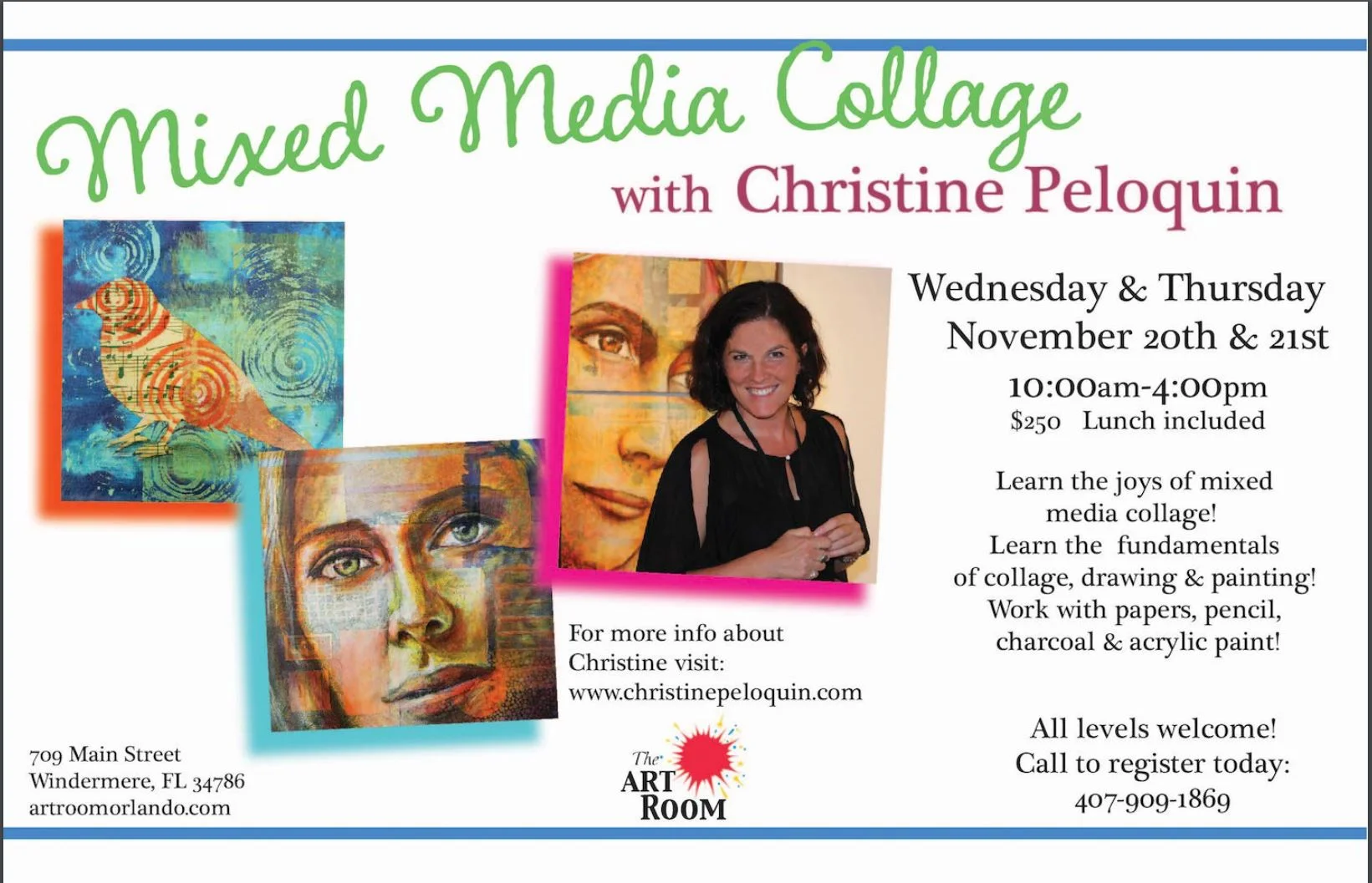 Drawing and Painting on Mixed Media Collage 2 Day Workshop at The Art Room, Windermere, FL